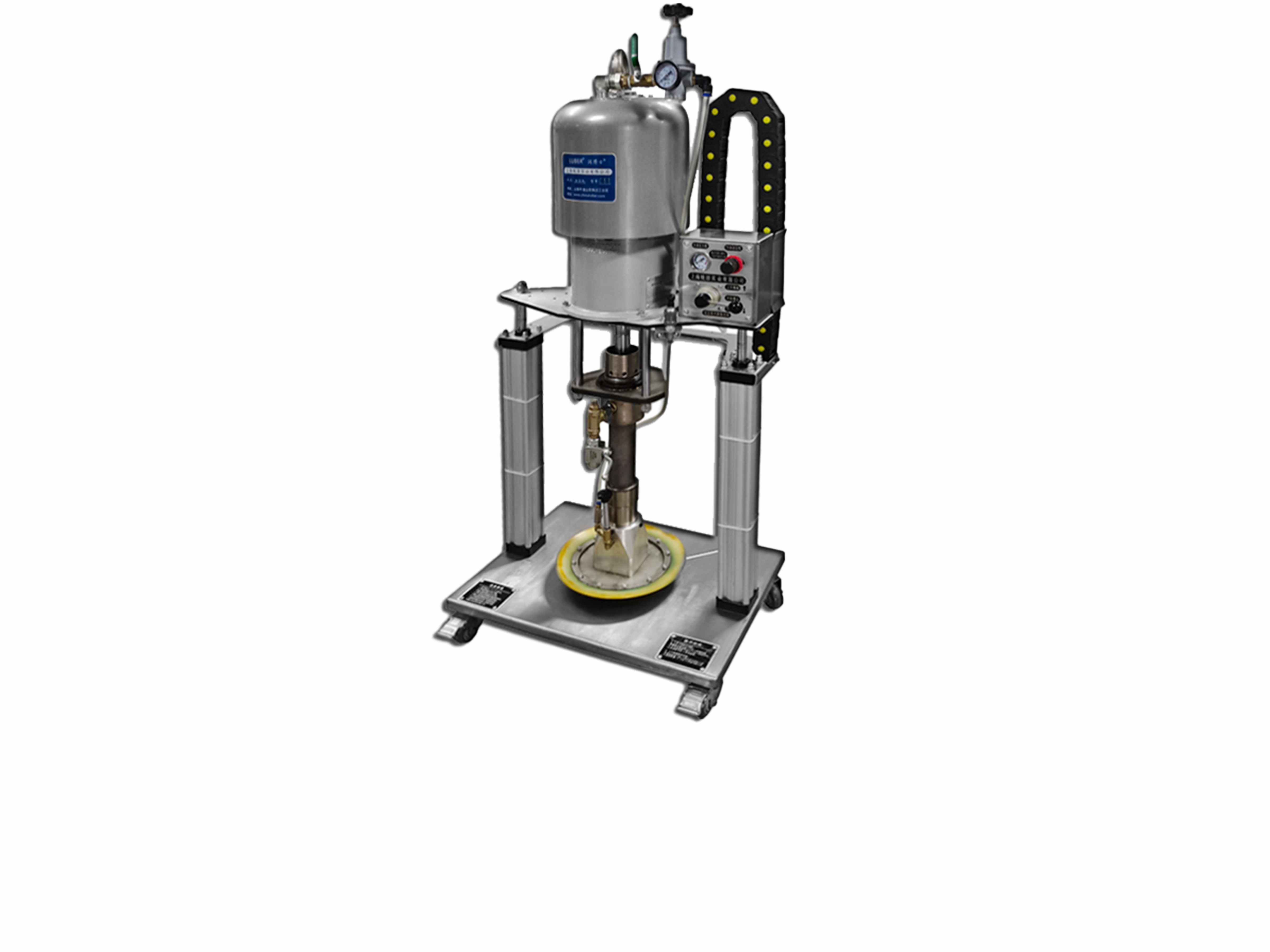 雙立柱黃油機是以壓縮空氣作動力,利用柱塞往復運動,從而輸出壓力潤滑油脂的一種裝置。配置有預施壓裝...