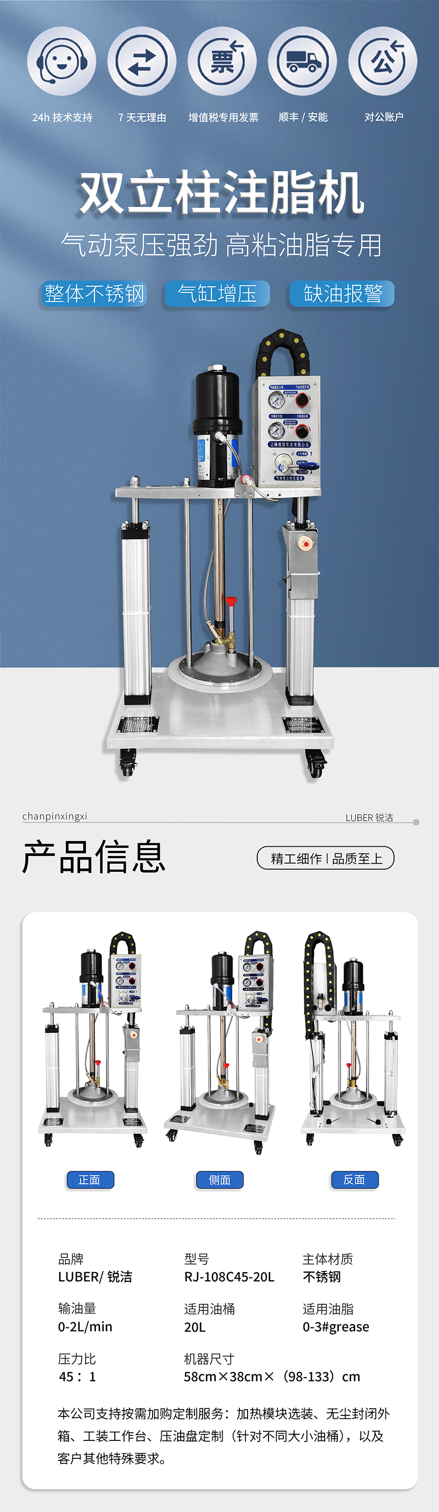 氣動小型注脂機RJ-108C45-20L 適用于油桶20L 輸油量2.0L/min